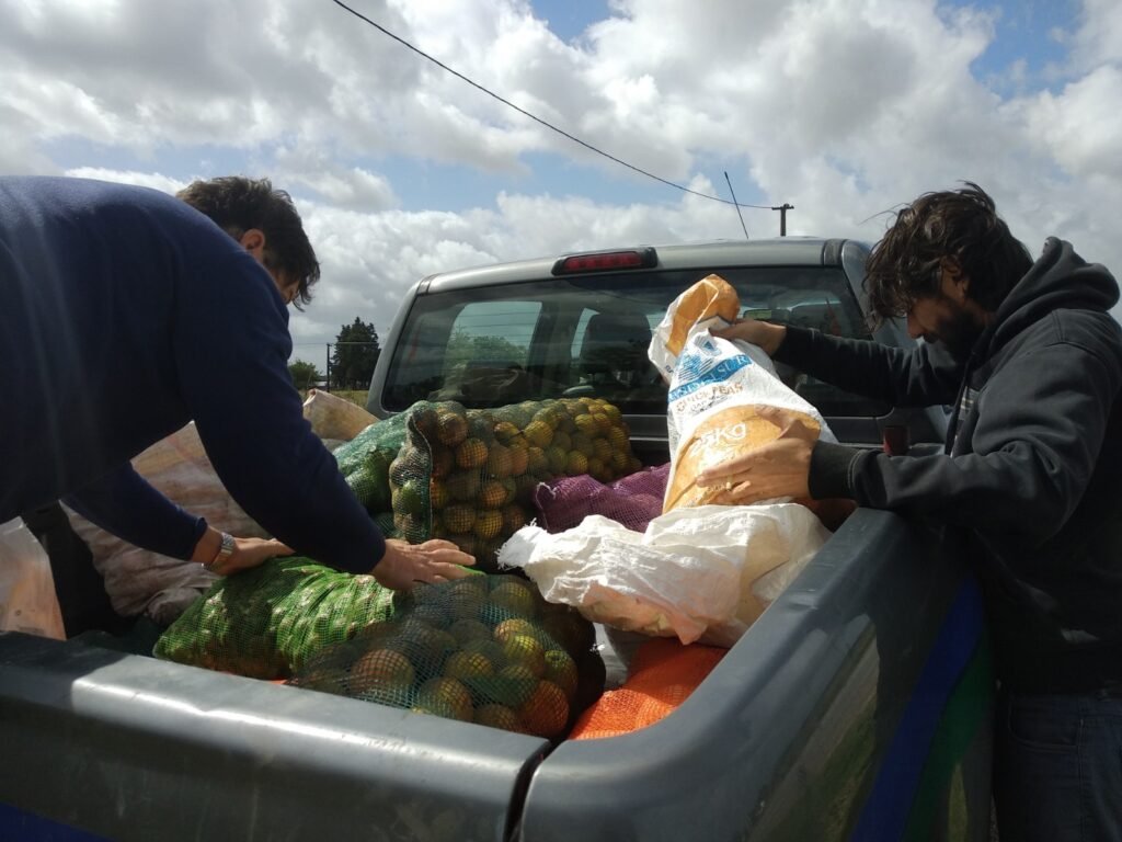 La Red Nacional de Semillas Nativas y Criollas de Uruguay, junto a la regional Santoral de la Red de Agroecología, organizaron un circuito semanal solidario para contribuir con su producción a las iniciativas que tienen como finalidad dar respuesta a las necesidades alimentarias de quienes se ven más afectados/as por la crisis asociada a la pandemia del COVID 19. Con el apoyo logístico de la Comuna Canaria, se comenzó un circuito para la recolección de frutas y verduras agroecológicas y su distribución en ollas populares, comedores y canastas de las zonas más afectadas de Canelones. Una vez más la agricultura familiar y la agroecología como modelo social y productivo dan muestras de su aporte fundamental para garantizar la soberanía alimentaria de nuestro pueblo.